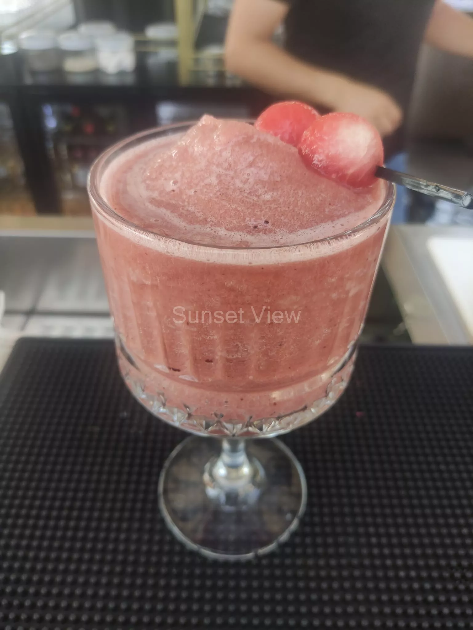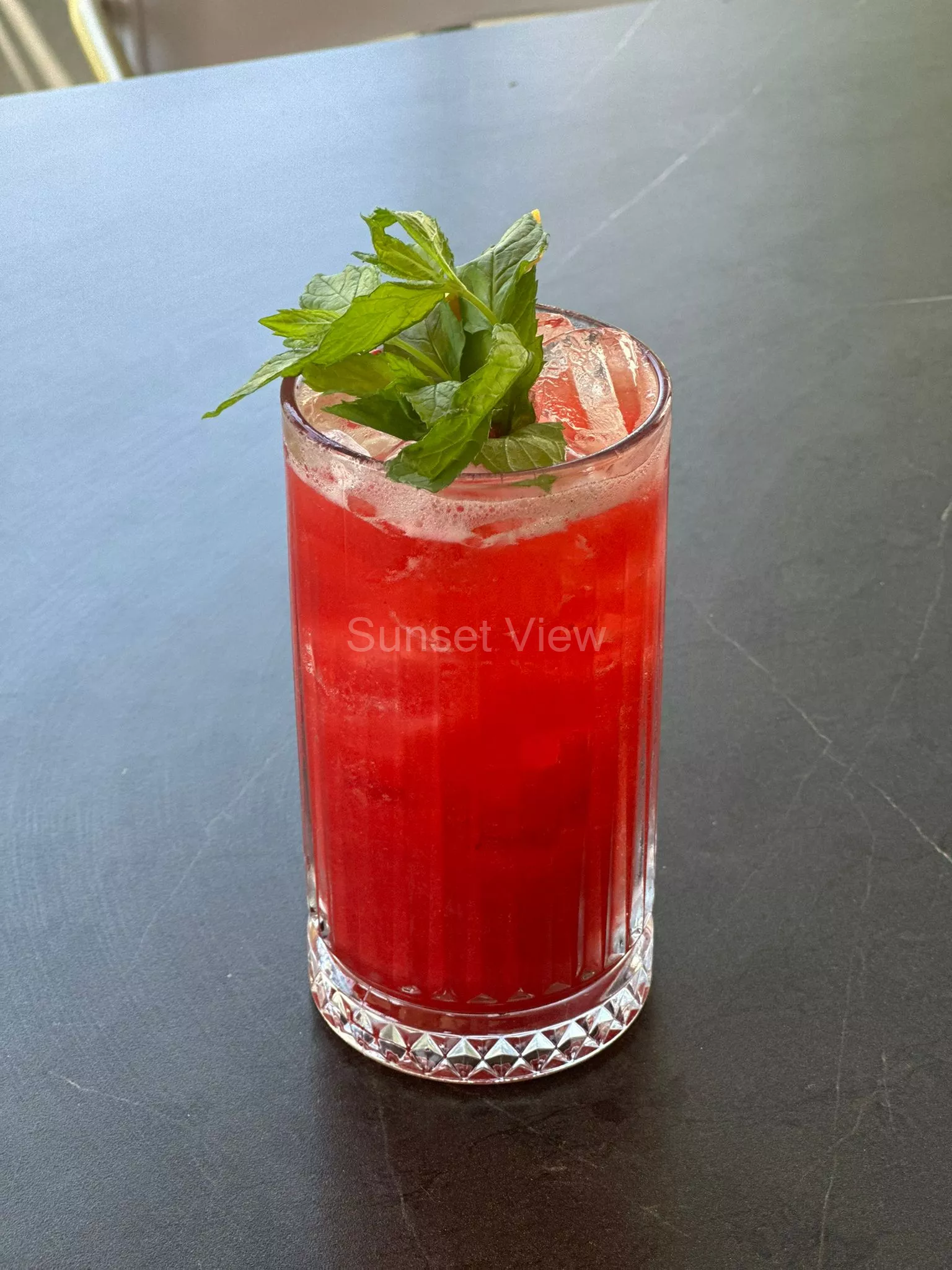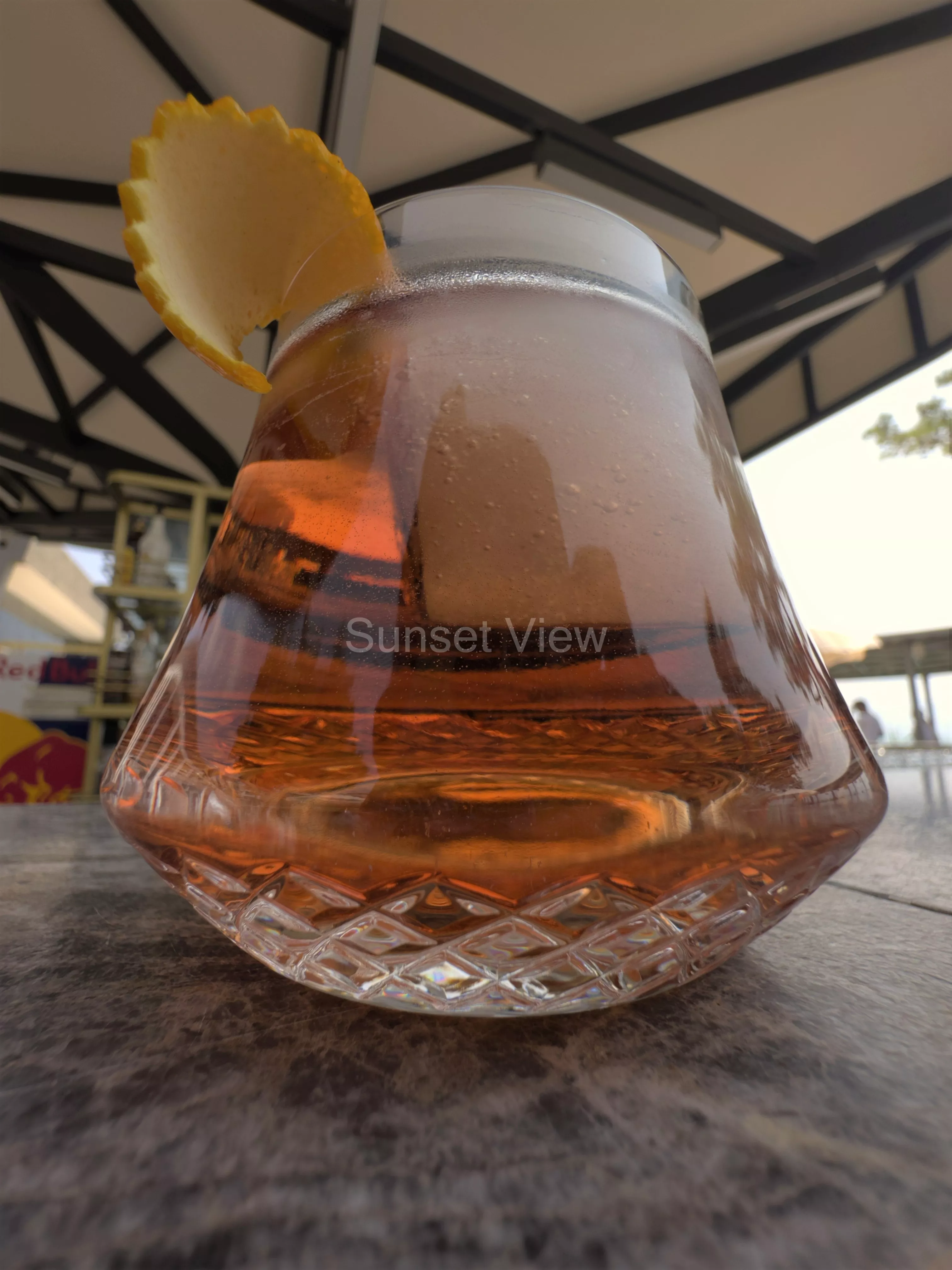 Beyaz Rom, Şili biberi, Çarkıfelek meyvesi püresi, Taze lime suyu, Sunset İmza Tatlı ekşi kokteyl Sos, Altın tozu