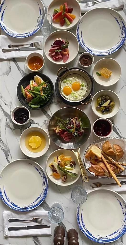 Hellim peyniri,Kars Eski Kaşar, Ezine Beyaz Peynir, İsli Sepet Peyniri, Bergama Tulum peyniri, İtalyan Salam, Dana Füme Et, Hindi füme, Sucuk,Petek Bal, Nutella, Ev Yapımı Reçel 3 Çeşit, Siyah Zeytin,Antakya Kırık Zeytin, Bahçe Salatası,Sahanda Yumurta, Kaymak,Patates kızartması, Mevsim Meyvesi, İnce Belli Bardakta Sınırsız Çay