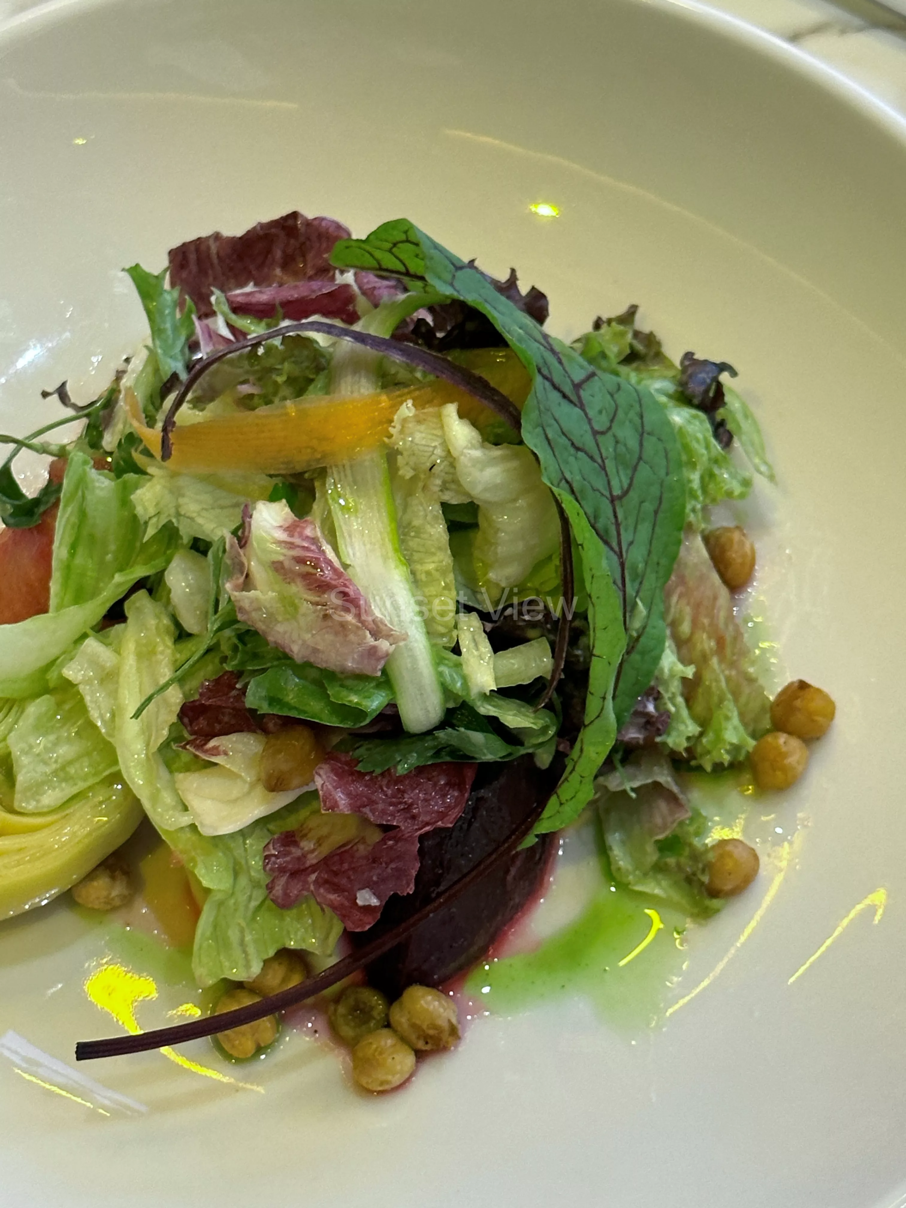 Karışık Yeşillik, Közlenmiş Renkli Biberler, Erik Domates,Rezene cips ve Balzamik sos