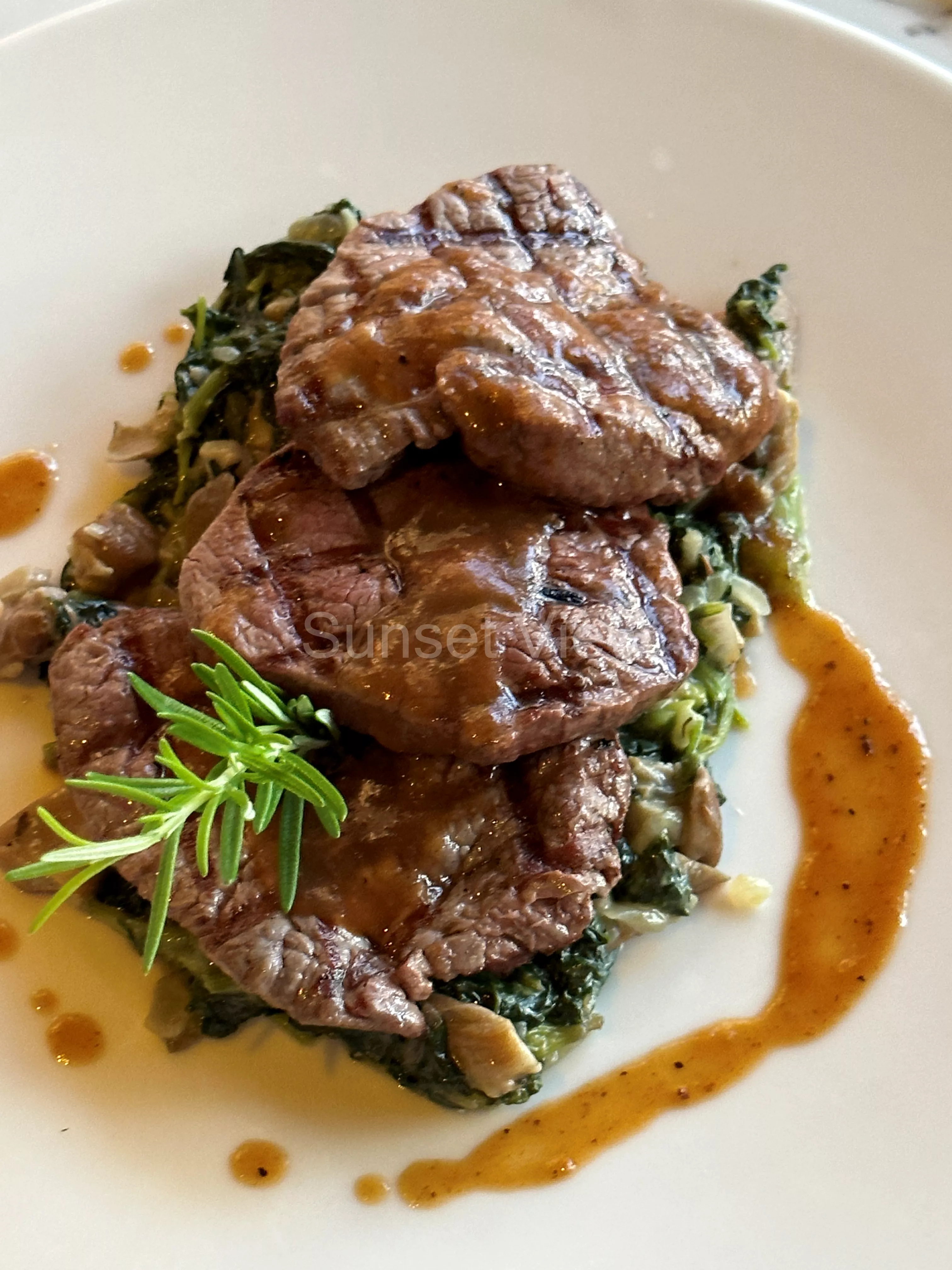 Biberiye ile marine edilmiş bonfile | üç çeşit mantar | ıspanak | maldon tuz