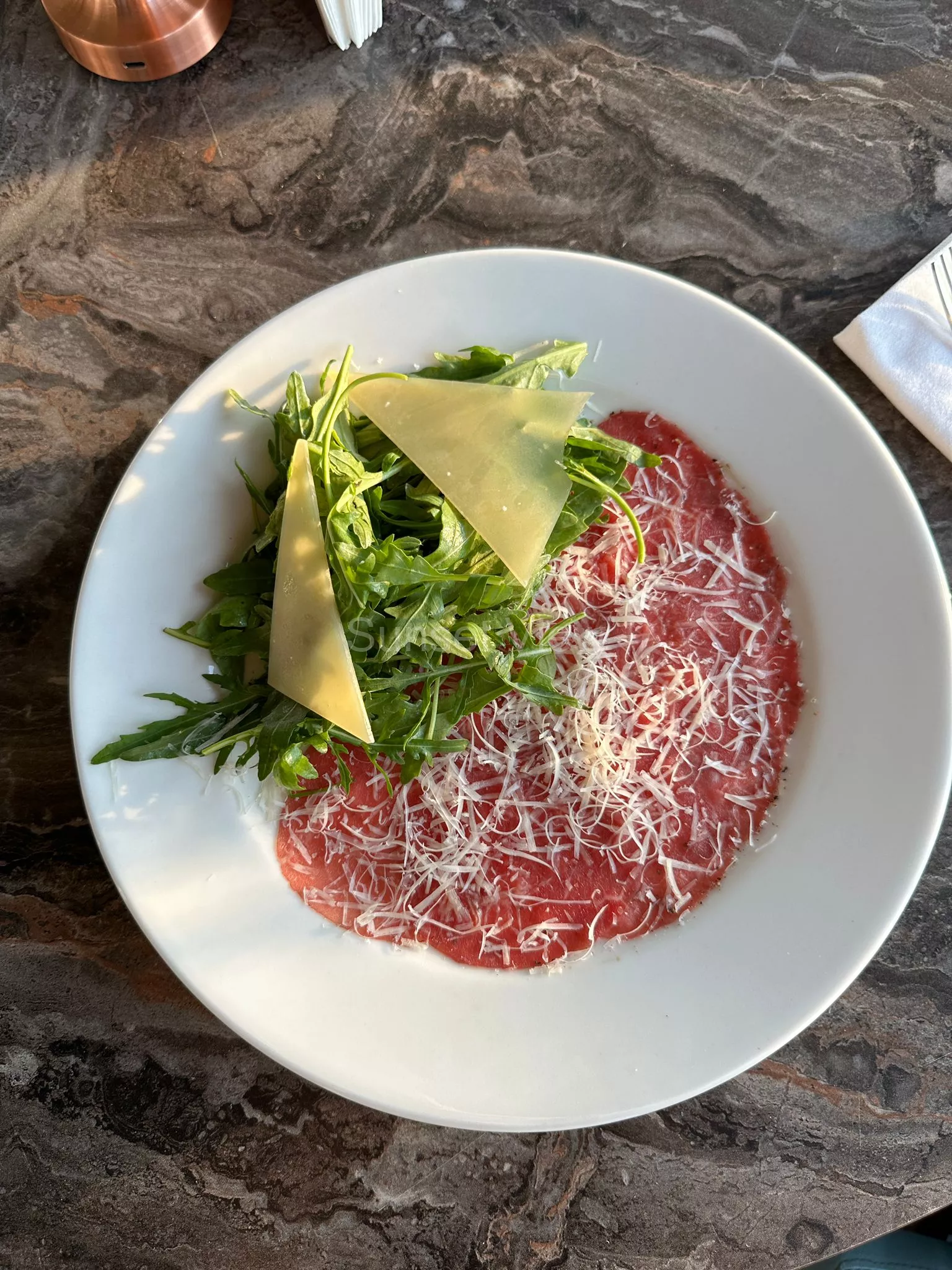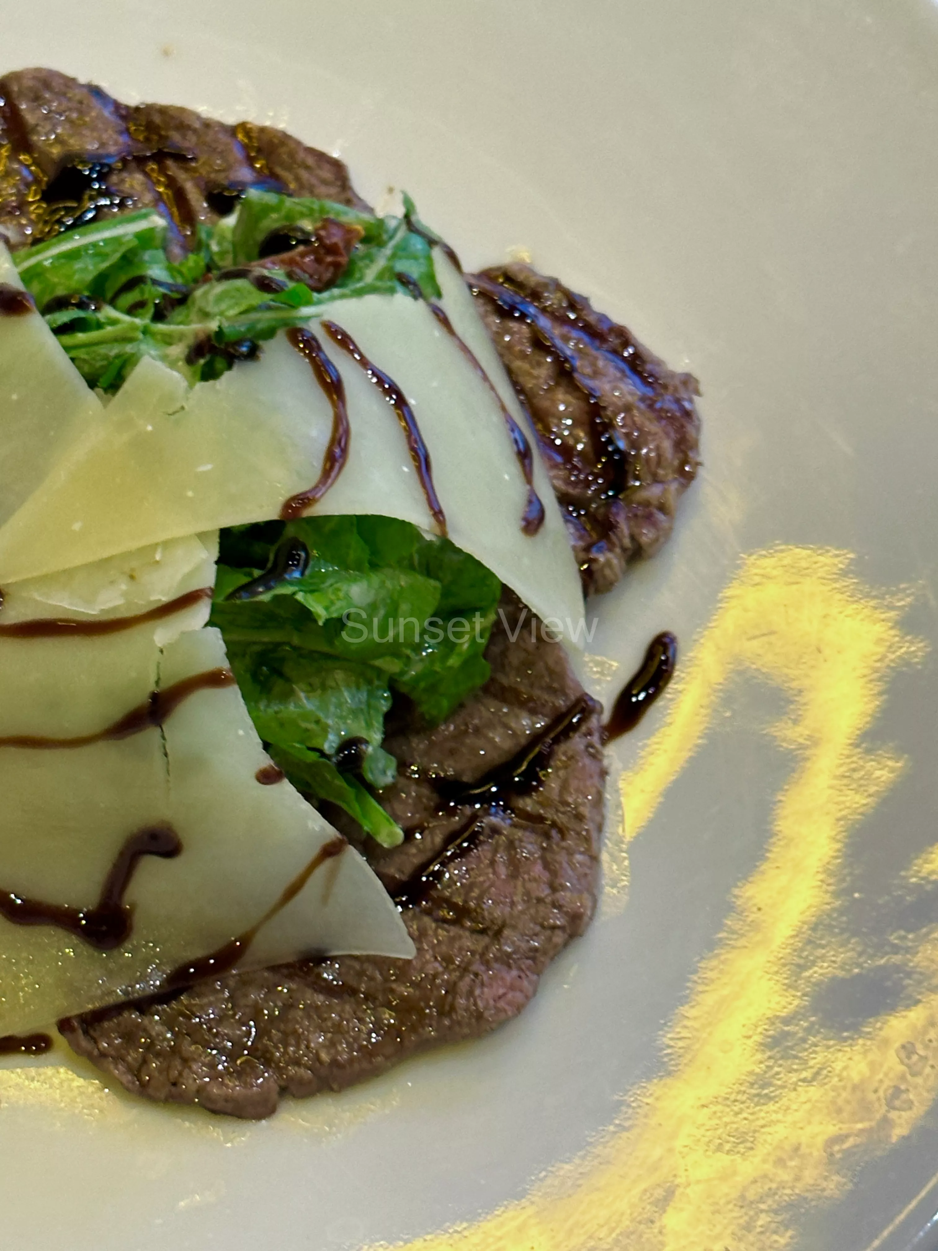 Dana Carpaccio | Türüf Yağ | Aragula Roka | Slays Reggiano Parmesan | Ekmek cips