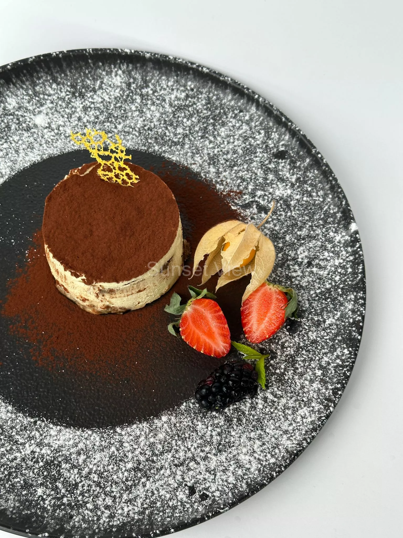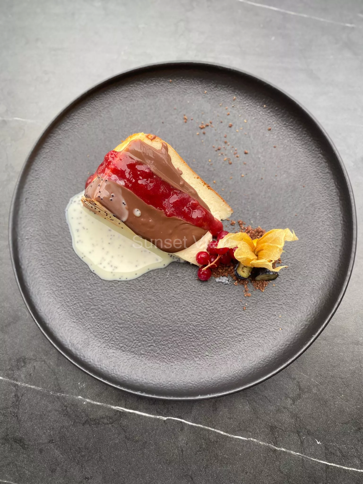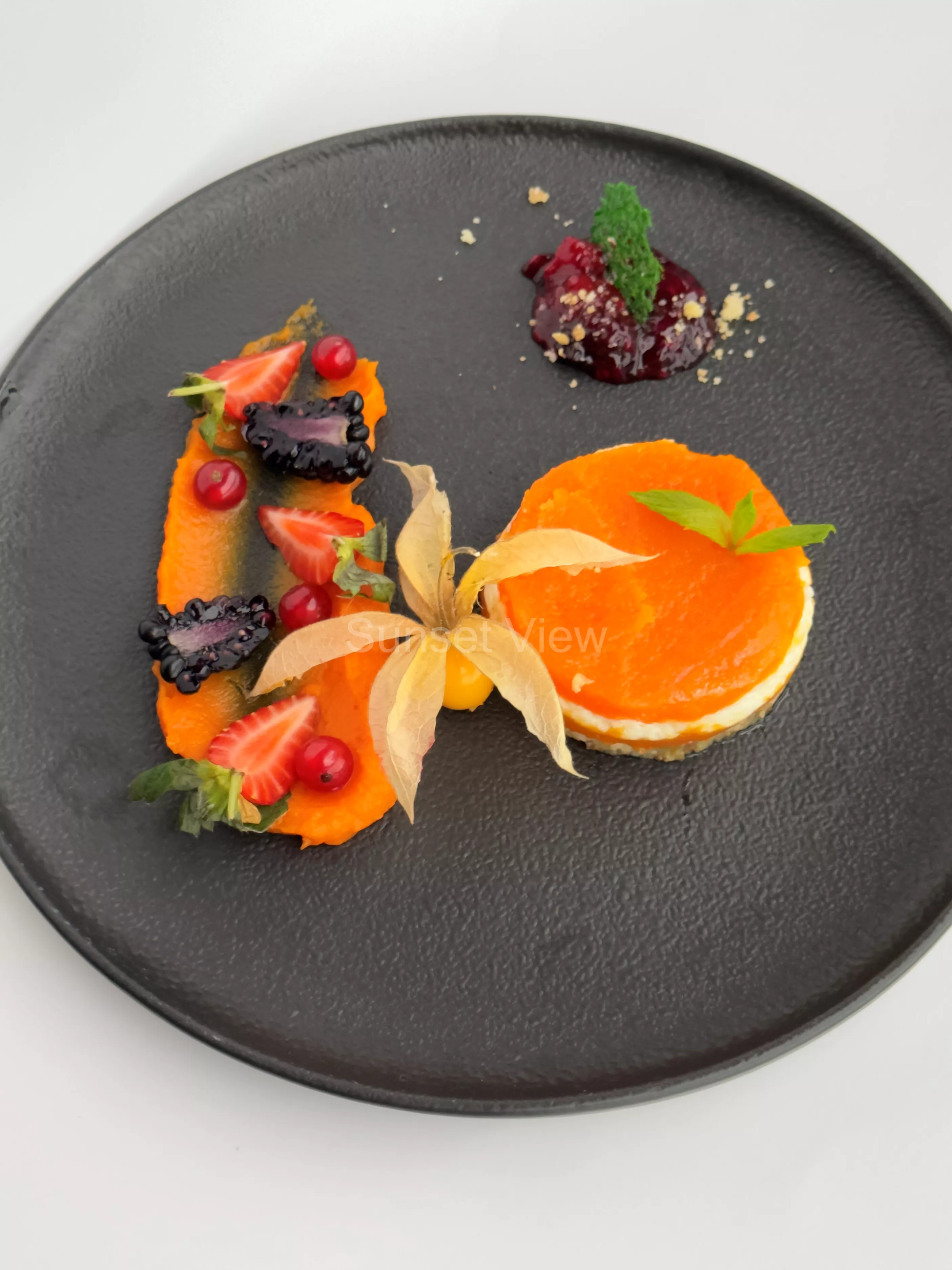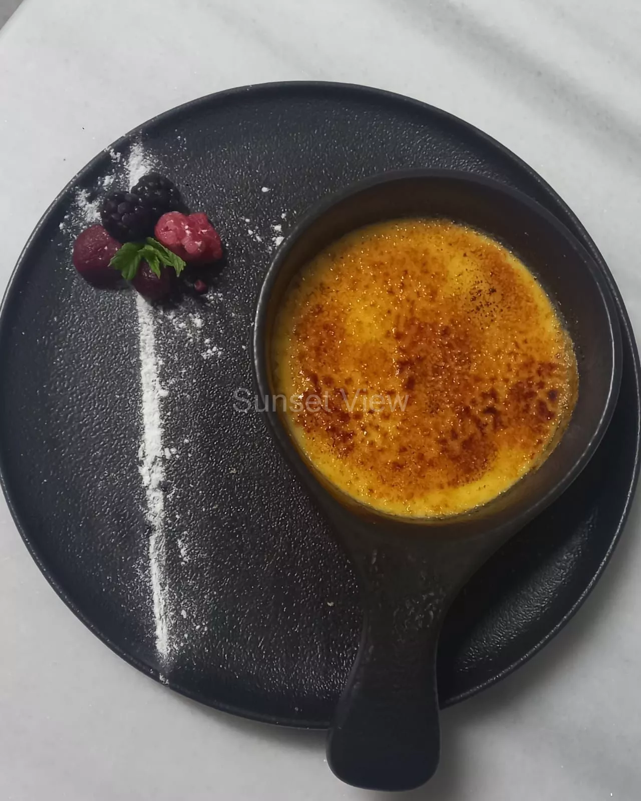 Klasik creme brulee,dağ meyveleri,vişne sorbe