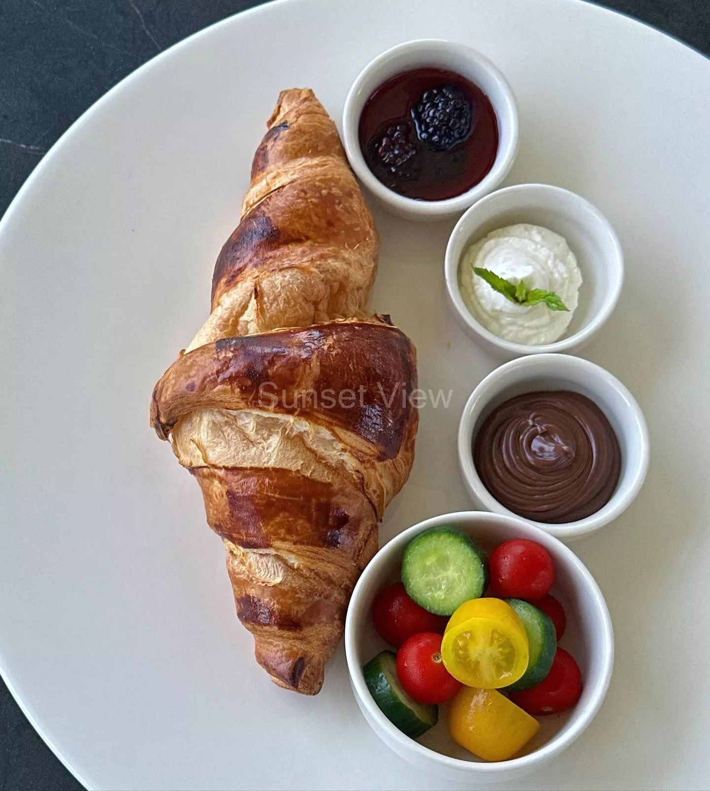Göz Yumurta,Sucuk ızgara,Krem Peyniri, Ezine Peyniri,siyah ve yeşil zeytin,Reçel, Domates ve salatalık